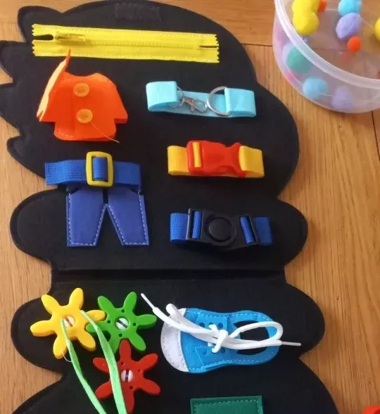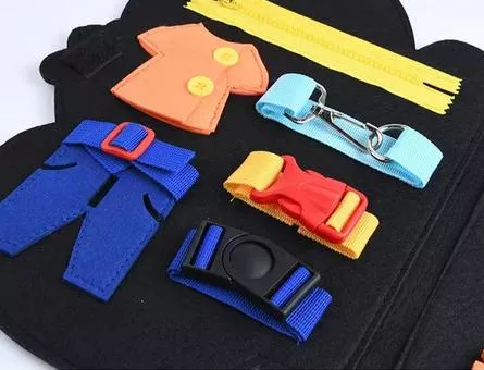 • Improves Fine Motor Skills: Activities like buttoning, zipping, and tying help develop hand-eye coordination and dexterity.