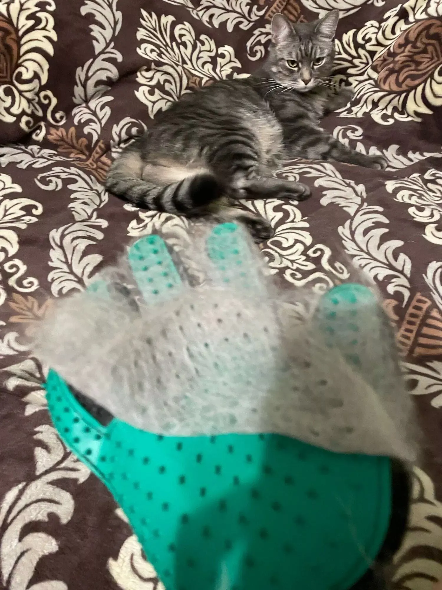 What sets our glove apart is its unique bionic design that closely mimics the texture of a cat’s tongue, ensuring a natural and enjoyable grooming experience for your pet. The humanized five-finger design allows you to reach around legs, tails, and other hard-to-groom areas effortlessly. Moreover, the variety of fun colors adds a splash of joy to grooming sessions.